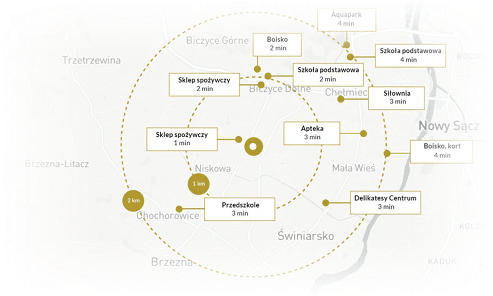 Spokój życia na wzgórzu z łatwym i szybkim dostępem do infrastruktury miasta Nowy Sącz.
